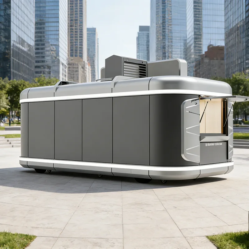 Ez a mobil italos utánfutó különféle méretekben kapható, 4-8 méter között, hogy megfeleljen a különböző üzleti igényeknek. A belső elrendezés az italkészítési folyamatnak megfelelően van optimalizálva, ésszerűen osztva fel az előkészítési, hűtési és értékesítési területeket, hogy maximalizálja az ételszolgáltatás hatékonyságát. Az eladó ablak lehajtható pulttal, nap- és esővédővel, valamint porálló válaszfalakkal van felszerelve, biztosítva a rendelés, előkészítés és átvétel kényelmét. A külső színekkel és reklámfénydobozokkal testreszabható a márka imázsához igazodva, fokozva a márka ismertségét. A helyhez kötött italboltokhoz képest jelentősen csökkenti a bérleti és felújítási költségeket, és lehetővé teszi a rugalmas helybeállítást az ügyfélforgalom alapján, így a mobil italüzletágak kedvelt berendezése.