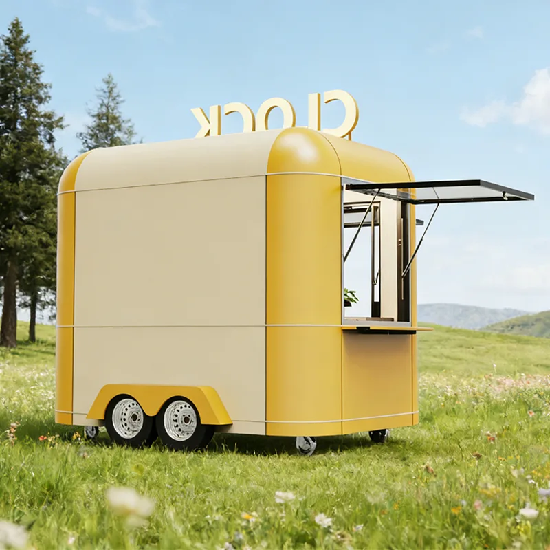 Könnyű acélszerkezetes vázzal felépített, megerősített vonórészekkel és stabil felfüggesztési rendszerrel szerelt termék, mely kisméretű pickup teherautóval is könnyedén vontatható, kiegyensúlyozva a mobilitást és a teherbíró képességet. Alkalmazkodik a különféle útviszonyokhoz, például városi sikátorokhoz és szabadtéri helyszínekhez, és kényelmes és hatékony a telepítése. A karosszéria élelmiszer-minőségű korróziógátló panelekből és vízálló bevonatokból készül, amelyek rozsdagátló kezelésen estek át, hogy ellenálljanak a kültéri szélnek, esőnek és olajfoltoknak. A megjelenés támogatja a személyre szabott testreszabást, mintákkal permetezhető, márkajelzésekkel ragasztható, valamint összecsukható nap- és esőtetővel és beágyazott világítódobozokkal párosul, nappal felhívja magára a figyelmet és eltereli az ügyfeleket, éjszaka pedig alkalmazkodik a piaci műveletekhez. A belseje teljesen rozsdamentes acél munkalap és csúszásgátló padló, amely ellenáll az olajfoltoknak és könnyen tisztítható, megfelel az utcai nassolási műveletek higiéniai követelményeinek.